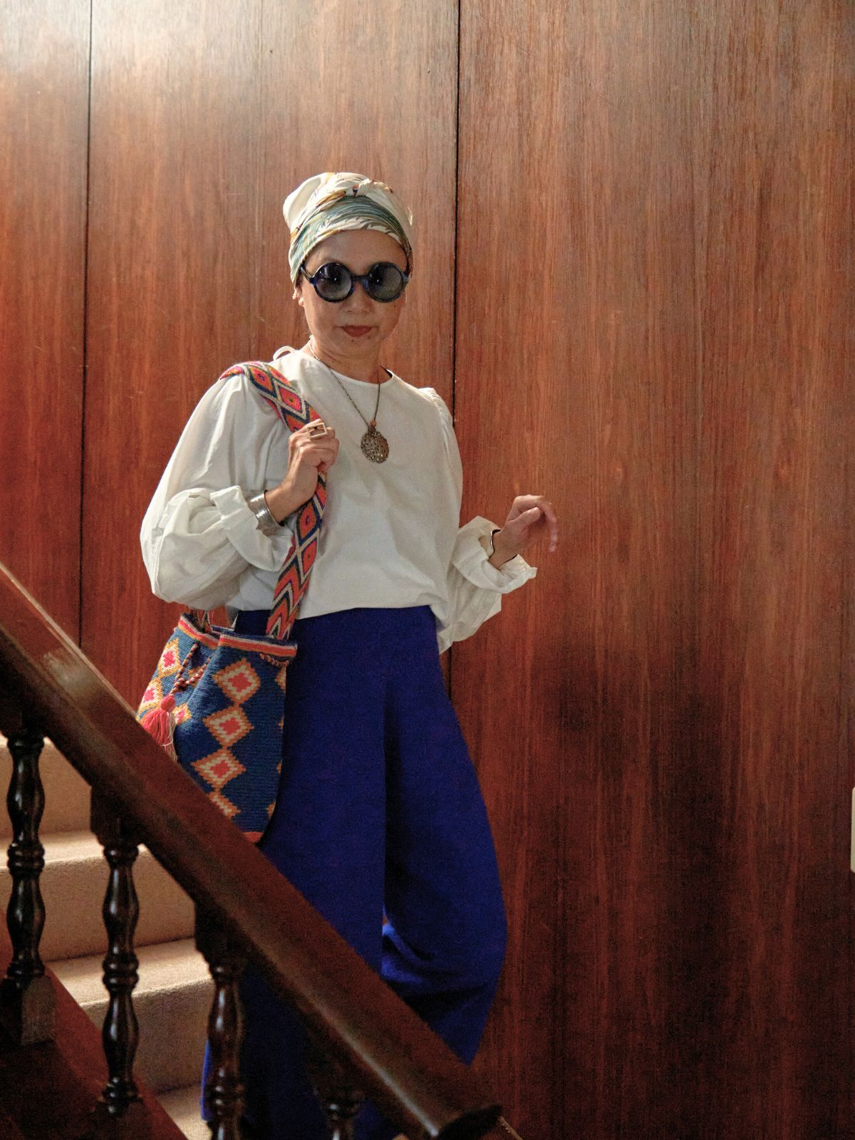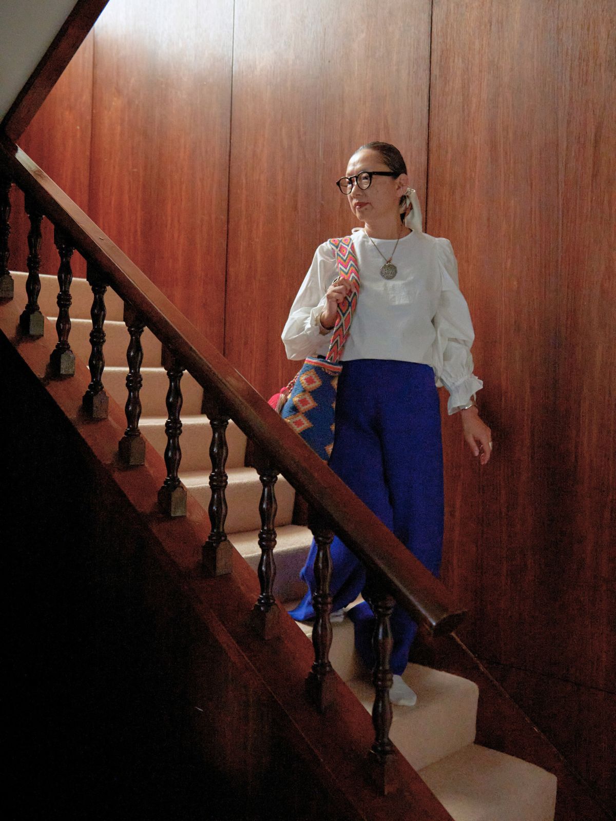 肩から袖にかけて落ちるようなシルエットで大人っぽく